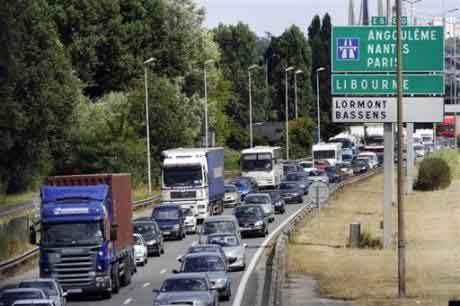 Des véhicules coincés dans les bouchons le 1er août 2008 près de Bordeaux./Jean-Pierre Muller AFP