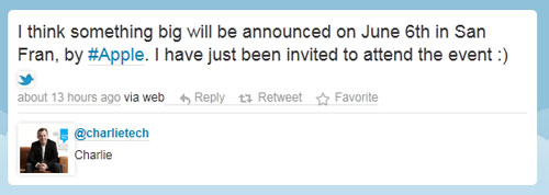 « Je pense que quelque chose de grand sera annoncé le 6 juin à San Francisco. Je viens juste de recevoir mon invitation », indique le journaliste sur Twitter (voir ci-dessus).