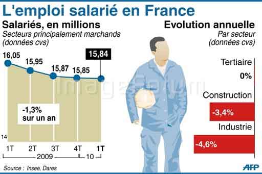 Le SMB a progressé de 0,7% au cours du trimestre et de +1,8% sur un an, a dit mardi le département statistiques du ministère (Dares). Parallèlement, les prix à la consommation (pour l’ensemble des ménages et hors tabac) ont augmenté au premier trimestre de 0,8% et de 1,5% entre mars 2009 et mars 2010.
