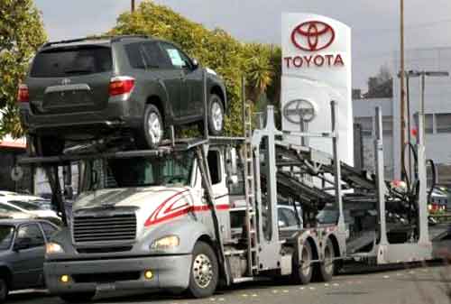 Un camion chargeant des voitures Toyota, le 29 janvier 2010 à Richmond, en Californie, aux Etats-Unis Justin Sullivan AFP/GETTY Images/ARCHIVES
